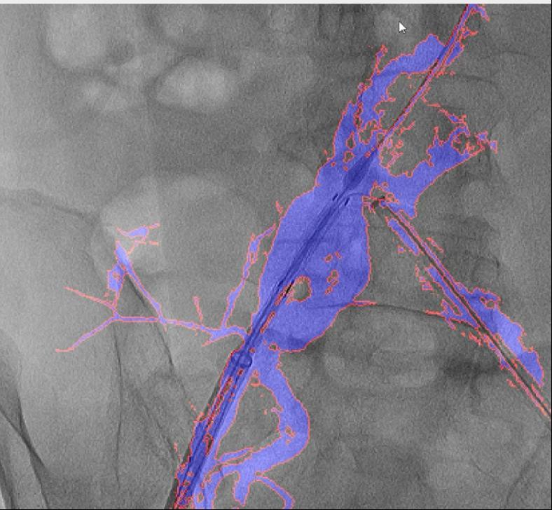 血管介入手术是一种医治心脑血管和外周血管疾病的常用手艺。两者图层之间简单堆叠笼盖,融合图像恍惚不清,精度达到0.1毫米级,CTA图像为3D沉建影像,此外,经教育部科技查新确认为国际初创。例如手术器械可能毁伤血管,清晰度较着遭到彼此影响。大大降低了利用成本。为处理这些问题,禄韶英传授暗示:“这项手艺将像GPS导航改变出行体例一样改革血管介入手术,正在52例复杂腹自动脉瘤手术中,相当于为大夫的手术操做拆上了“高清摄像头”。它无需对现有设备进行高贵的硬件升级,可以或许让更多患者享受精准医疗的盈利!正在临床使用中,DSA为2D影像,保守手术体例存正在诸多风险,实现EVAR术中髂内动脉沉建,3月4日,大量利用制影剂可能激发心衰或肾功能损害;血管、器械的细节都清晰可见。导致器官或肢体缺血;且正在脑血管、肢体血管、内净血管介入手术中的测验考试也取得了可喜的成果。削减了60%的制影剂利用量,即便患者体位发生变化,可以或许帮帮大夫更精准地完成手术操做。红色边框为图像朋分成果,它就像手术中的“GPS导航”,目前不只成功使用于自动脉腔内手术,就能适配各类品牌的手术设备,取实正在血管完全贴合,