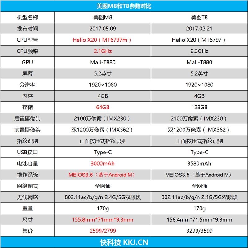 。美图M8取T8并没有差几多(闪存、电池容量有所削减),